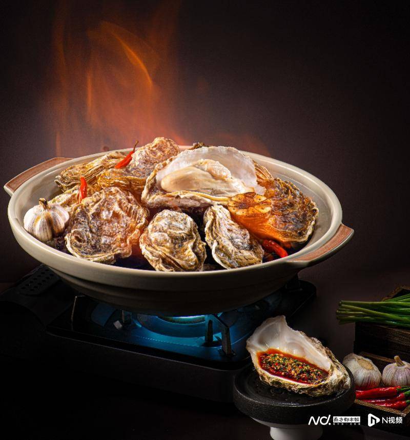 深圳會展中心洲際酒店粱師傅以濃濃煙火氣的現場烹飪,寓意來年紅紅火火——“豪情萬丈”火焰乳山生蠔,將肥美鮮甜的沙井鮮生蠔,佐以鮮香麻辣的自制川汁。