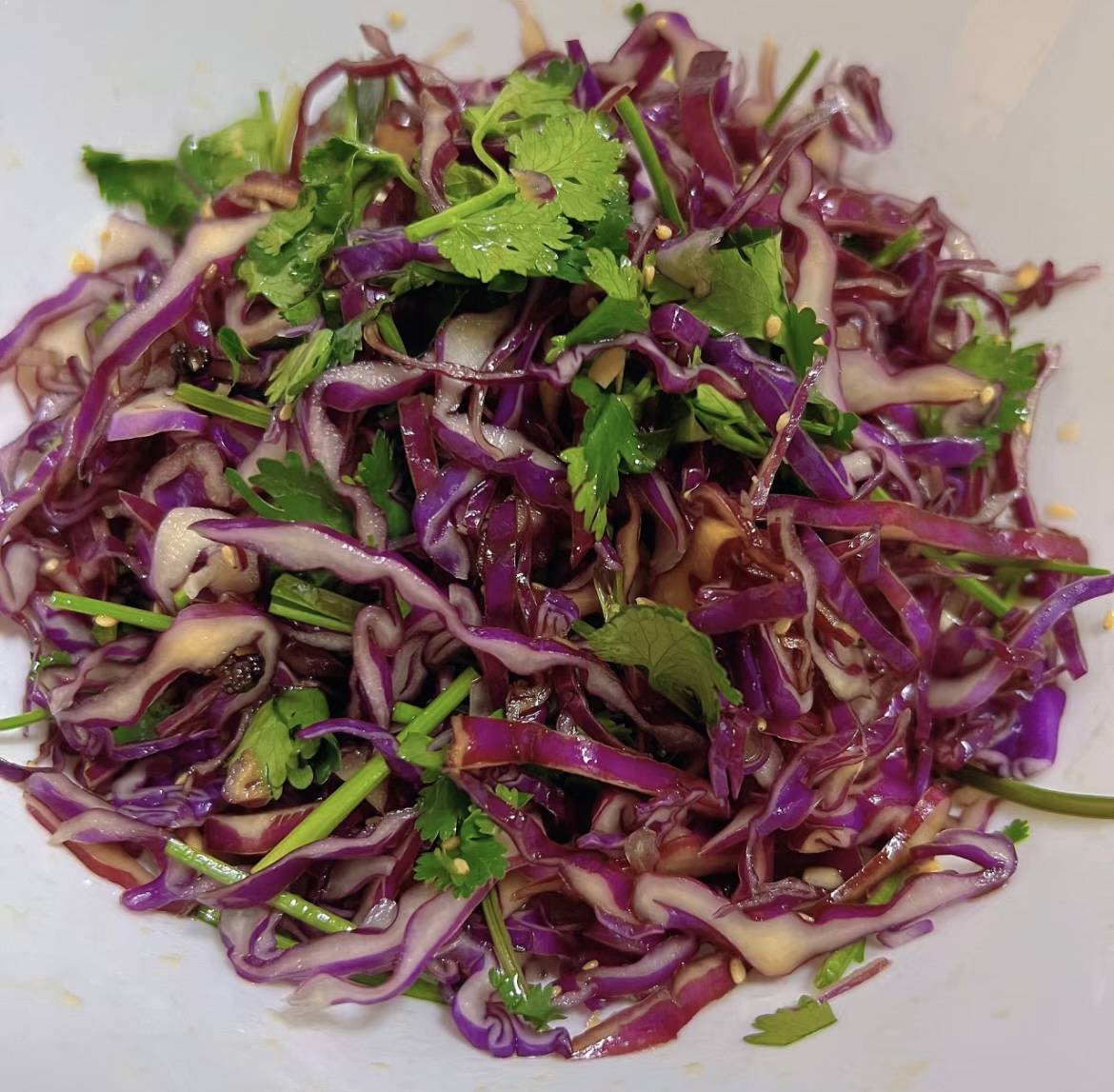 食材:西蘭花、蒜末、鹽、生抽、糖、胡椒粉步驟:1. 西蘭花洗凈切成小塊,用開水焯燙一下撈出。2. 鍋中熱油,加入蒜末爆香,加入西蘭花翻炒。3. 加入適量鹽、生抽、糖、胡椒粉調味,翻炒均勻即可。二、涼拌紫甘藍