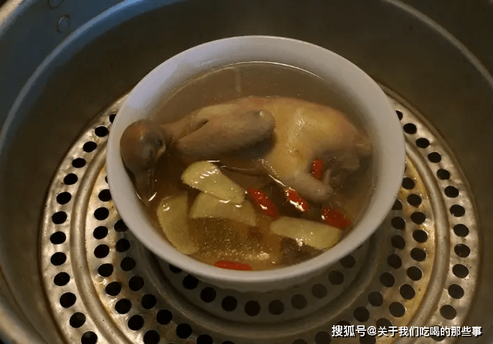 2、把鴿子放入大碗中,加入適量熱水沒過鴿子,加入薑片、枸杞和一勺料酒。蒸鍋加水燒開,放入鴿子用小火蒸1個半小時,最後加入適量鹽調味,即可出鍋,湯鮮美,肉緊致,滋補好湯。