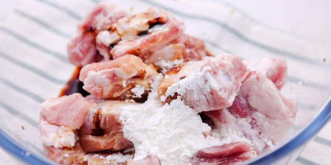 2.加入老抽、生抽、鹽、料酒、玉米淀粉、植物油,用手抓捏均勻後醃制30分鐘。