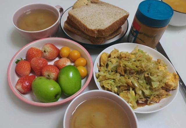 今天比較簡單,因為孫女沒有什麼胃口,就簡單買瞭全麥面包當早餐,搭配好喝雪梨湯,可以潤喉,甜滋滋的喝起來很舒服。照樣有炒雞蛋,加瞭卷心菜,味道更好。