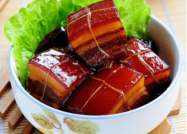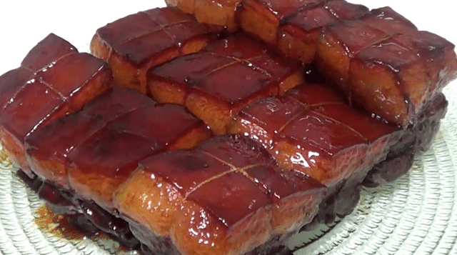 4.接下來,將蒸好後的肉塊整齊地擺放在盤中,最後將過濾掉殘渣的湯汁用大火熬制至濃稠狀,然後將此汁液澆在肉塊上。這樣一來,這道金典的東坡肉就完成瞭。它的顏色艷麗,肉質肥美卻不膩口,口感酥軟入口即化,而且無需炒糖色。