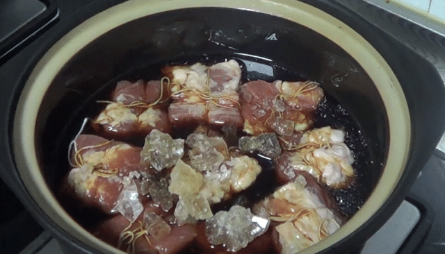 這位大廚指出,要做出美味的東坡肉,需掌握兩個關鍵因素:首先,不添加任何水分或油分,而是使用花雕酒和啤酒進行低溫慢燉至酥爛;其次,為瞭避免在燉煮過程中肉質松散,需要將四方塊的五花肉用繩子捆綁起來。經過這樣燉煮出來的東坡肉,肉質軟糯,肥瘦分明。即使是不喜歡吃肥肉的人,也難以抵擋其美味的誘惑!今天,我將與大傢分享這款著名菜肴的制作方法。1. 初始步驟是把五花肉在預熱的鍋中煎烤,以消除其皮部的腥味和殘留的豬毛。將豬皮煎至金黃色後,用刀刮除,然後用溫水徹底清潔。清潔完成後,將五花肉與黃酒、蔥和薑片一同煮熟,以進一步去除血水,煮至八成熟即可。當筷子插入無血水溢出時,撈出並用冷水沖洗,然後晾涼。