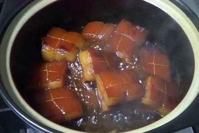 3.首先,將火候調至大火,待其煮沸後,再將之轉至最小火進行長達2小時的慢燉。在燉煮過程中需多次翻動肉塊以確保其色澤均勻。經過2小時的燉煮,肉塊的顏色會變得紅潤鮮艷,此時便可食用。然而,若要制成經典的東坡肉,還需進行下一步處理。將燉好的肉塊置於盤中,倒出湯汁,然後進行1小時的蒸煮。這樣可以逼出肉塊中的油分,使東坡肉口感更佳,不顯油膩且質地更為柔軟。