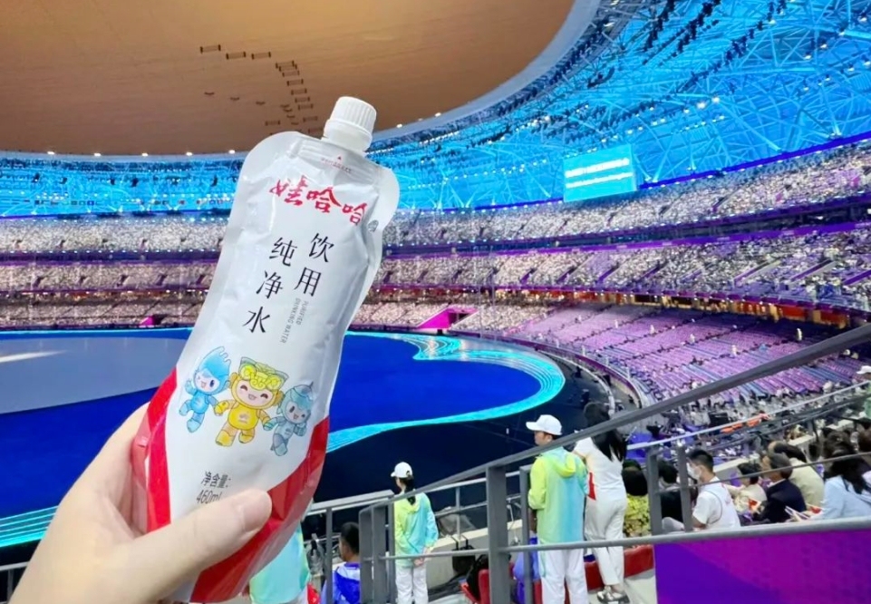 今年亞運會開幕式上,觀眾們註意到瞭娃哈哈純凈水的不同之處。純凈水采用瞭獨特的袋裝包裝形式,經典紅白配色設計融合亞運吉祥物形象,讓消費者眼前一亮。