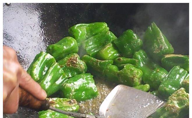 加熱後,加入之前炒好的青椒,加入一些蒜末。青椒再烤一會兒至熟,然後炒一會,讓蒜和青椒結合,吸收香氣。但大傢一定要記住,我們的貨幣一定要用新鮮的,大火快炒,炒的時候加鹽和醋。快速炒幾下後,就可以上桌瞭。否則,辣椒煮過頭,就會失去香甜的味道。