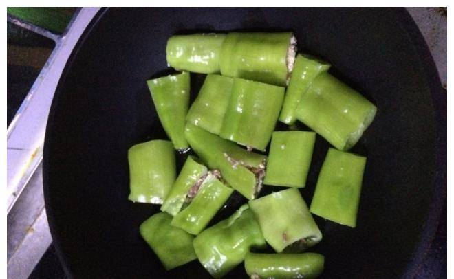 辣椒洗凈後,切成兩半,去掉帽子和裡面的辣椒籽。如果還是擔心辣椒的辣味,也可以切好後用冷水浸泡兩到三分鐘,這樣也可以降溫。一點香料。最後我們就可以制作虎皮青椒瞭。首先我們把鍋洗幹凈,然後把辣椒放進去。用抹刀用力按壓青椒,使吉利丁快速煮熟,直至兩面起皺。事情已經完成瞭。盛出,然後將食用油倒入鍋中,繼續加熱。