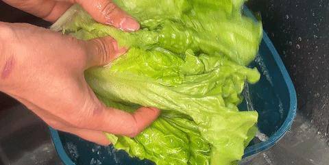 1.將生菜放在流動的水下面清洗幹凈,一片一片掰下來
