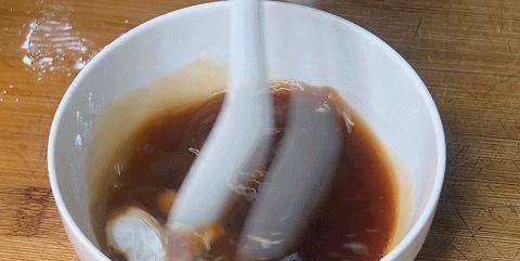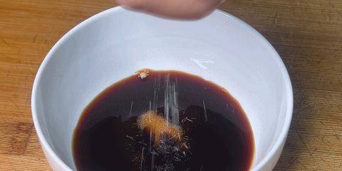 9.在一個小碗中加入兩勺蠔油,兩勺生抽,半勺食鹽
