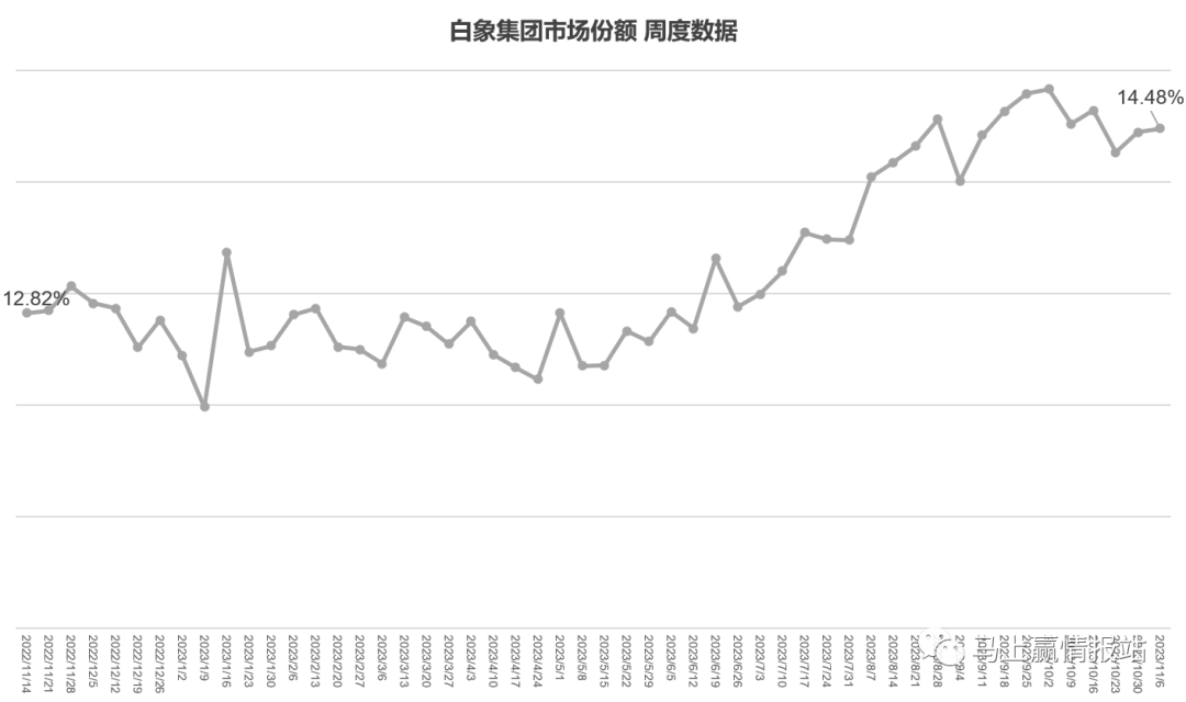 根據馬上贏監測所得數據,白象目前在方便面品類內部漲勢較好,從康師傅、統一、今麥郎等一眾集團中脫穎而出。橫向上看,白象目前的市場份額緊隨康師傅、統一兩大頭部集團,已經超過瞭今麥郎等品牌位列第三;而從縱向上看,白象近一年的市場份額走勢向好,反觀統一則呈現出占比下降的趨勢。康師傅、今麥郎雖然整體較為穩定,但是在類目份額中也沒有增長跡象。