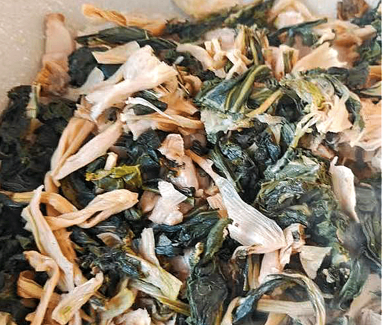 3、奶白菜幹用溫水泡軟洗凈待用。