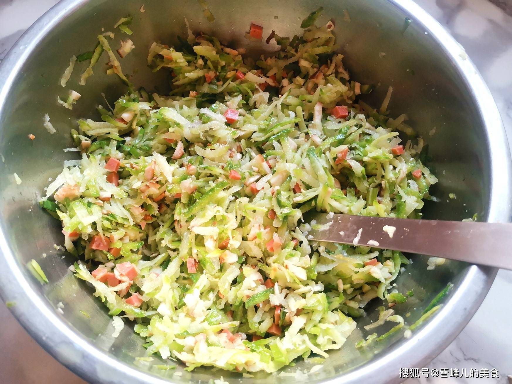 2,蘿卜做餡,擦成蘿卜絲的時候需要用鹽煞水,主要是為瞭去掉蘿卜的苦味,捏幹後再用花生油拌勻,這樣可以餡料更好吃,不可省略哦。