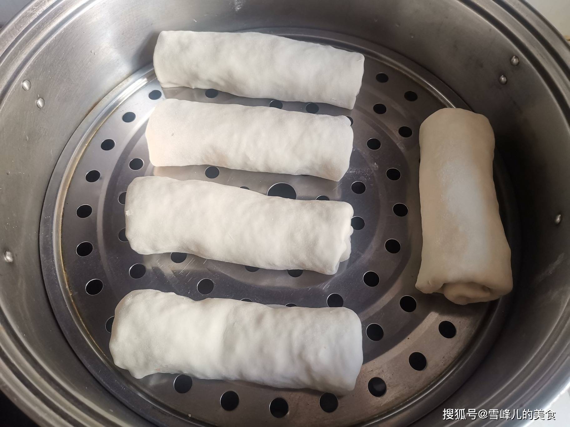 第五步:篦子上抹油防止粘連,卷好的蘿卜卷全部放在篦子上,大火燒開。