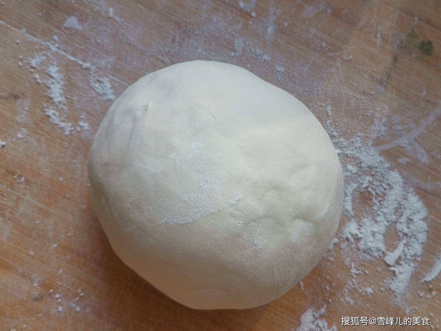 第一步:面粉加入適量的清水和成軟硬適中的面團,放入盆中蓋上保鮮膜靜置一會兒揉勻,不需要發酵,就和包餃子的面團是一樣的。