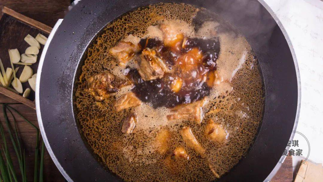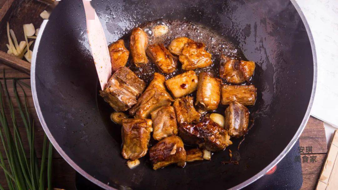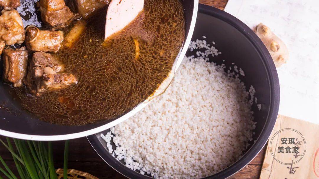 隻需要先把排骨焯水、翻炒、燉煮後,再連著湯汁一起倒入電飯鍋,煮熟就可以瞭。