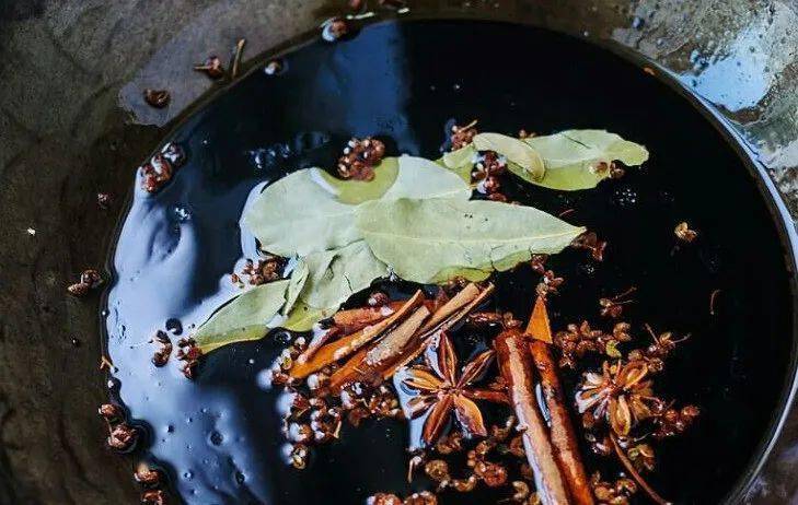 5、鍋裡倒入一瓶生抽,500毫升的那種,再加上小半瓶老抽,大概200毫升,加入半碗冰糖,把香料都倒進來,再切幾個蔥段、薑片,蓋上蓋子後開小火煮幾分鐘,把香料的香味都煮出來,熬出醬香味,然後關火放涼。