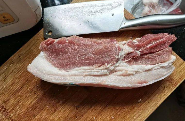 1、準備一塊二刀肉,用五花肉也可以,把肉切成5厘米的長條,切記不要沾生水,不然會壞掉的,因為水裡面也有細菌。