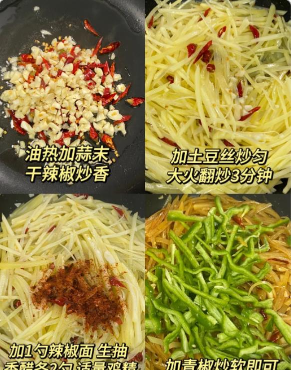 材料:土豆,青椒,辣椒面,生抽,香醋,雞精,大蒜末。