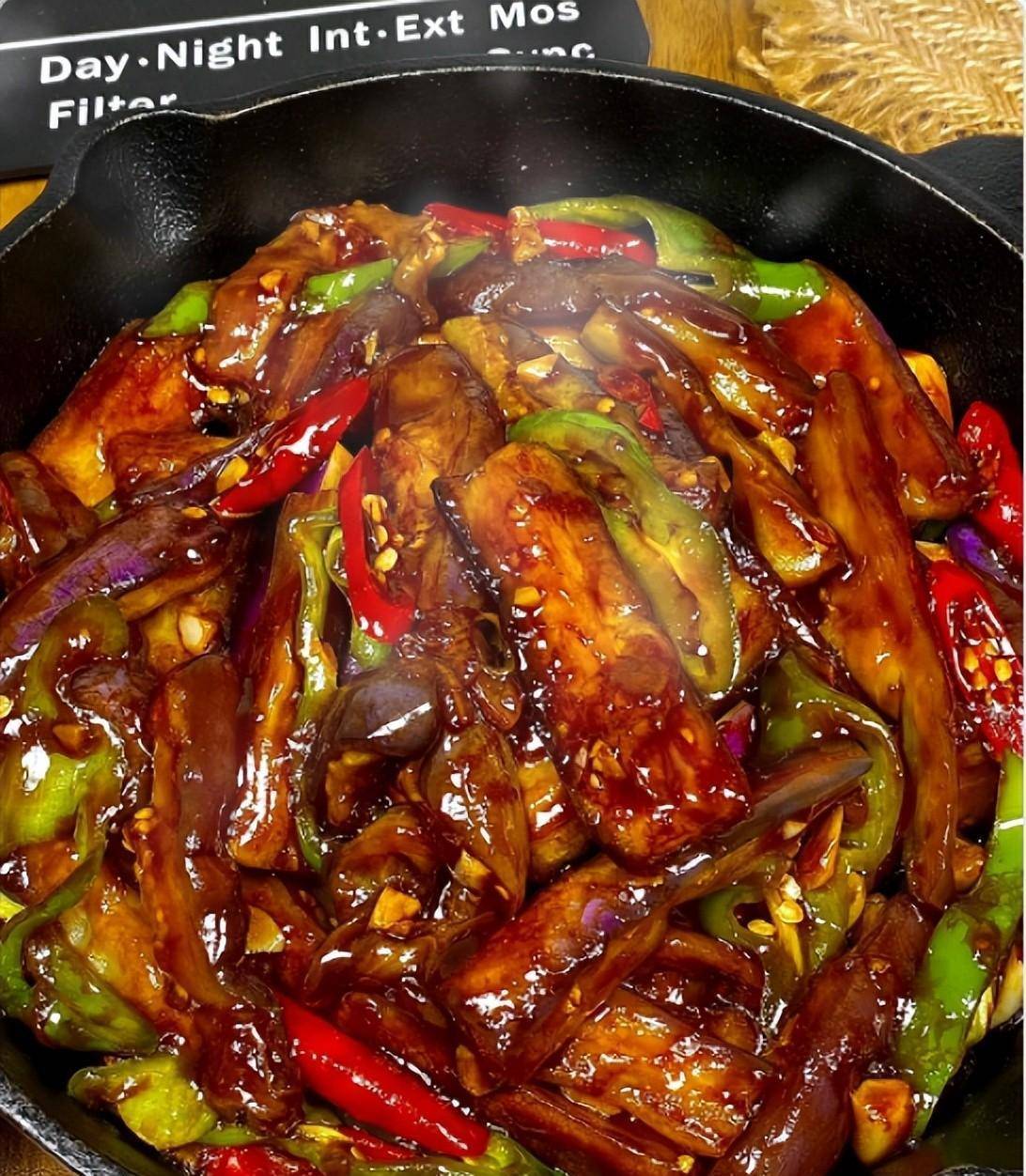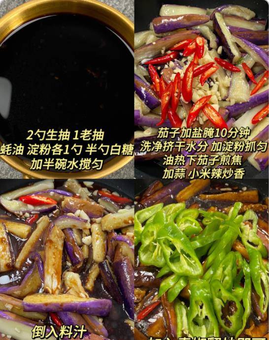 材料:茄子,螺絲椒,小米辣,大蒜末。