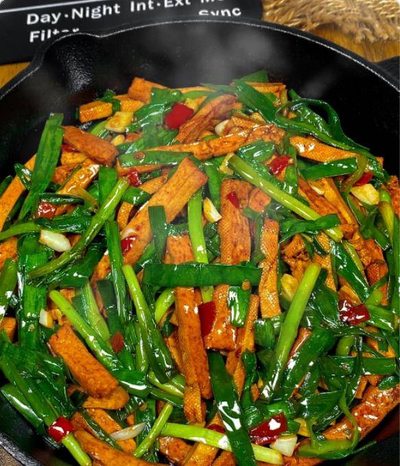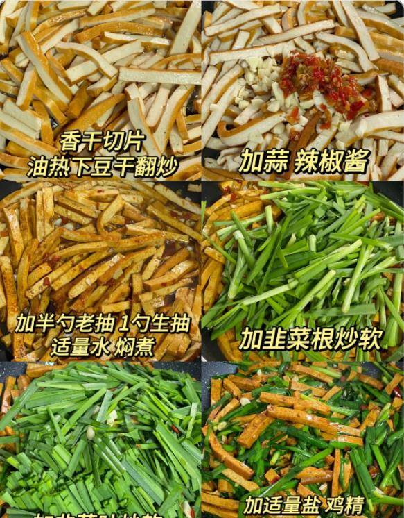 材料:韭菜,香幹,大蒜,辣椒醬,老抽,生抽,清水,鹽,雞精,蠔油。