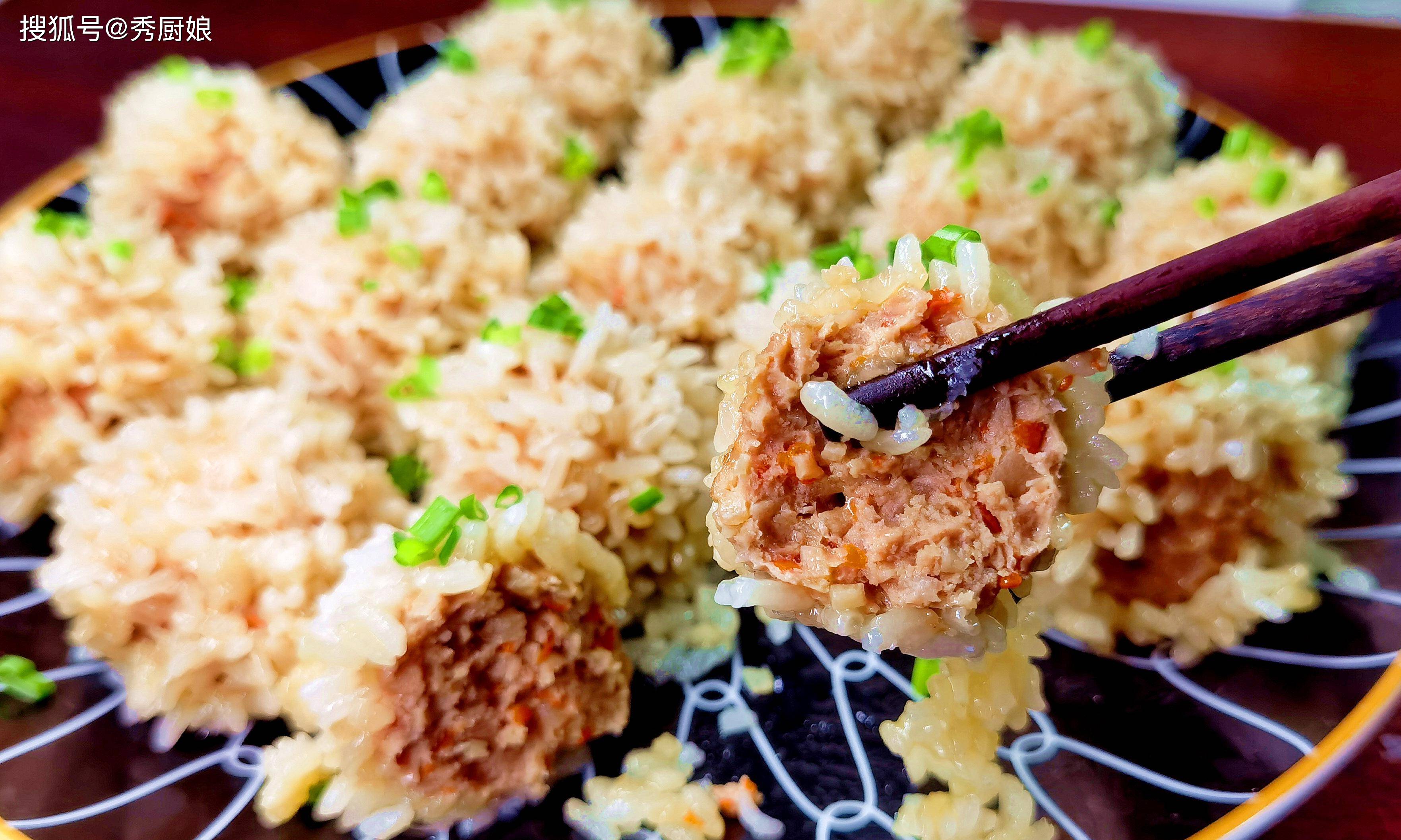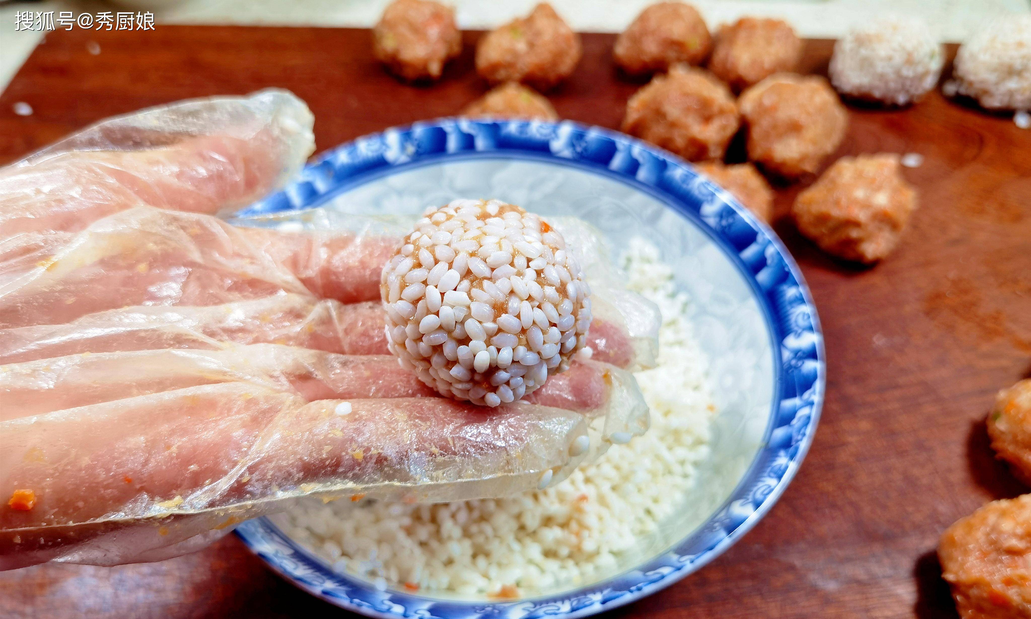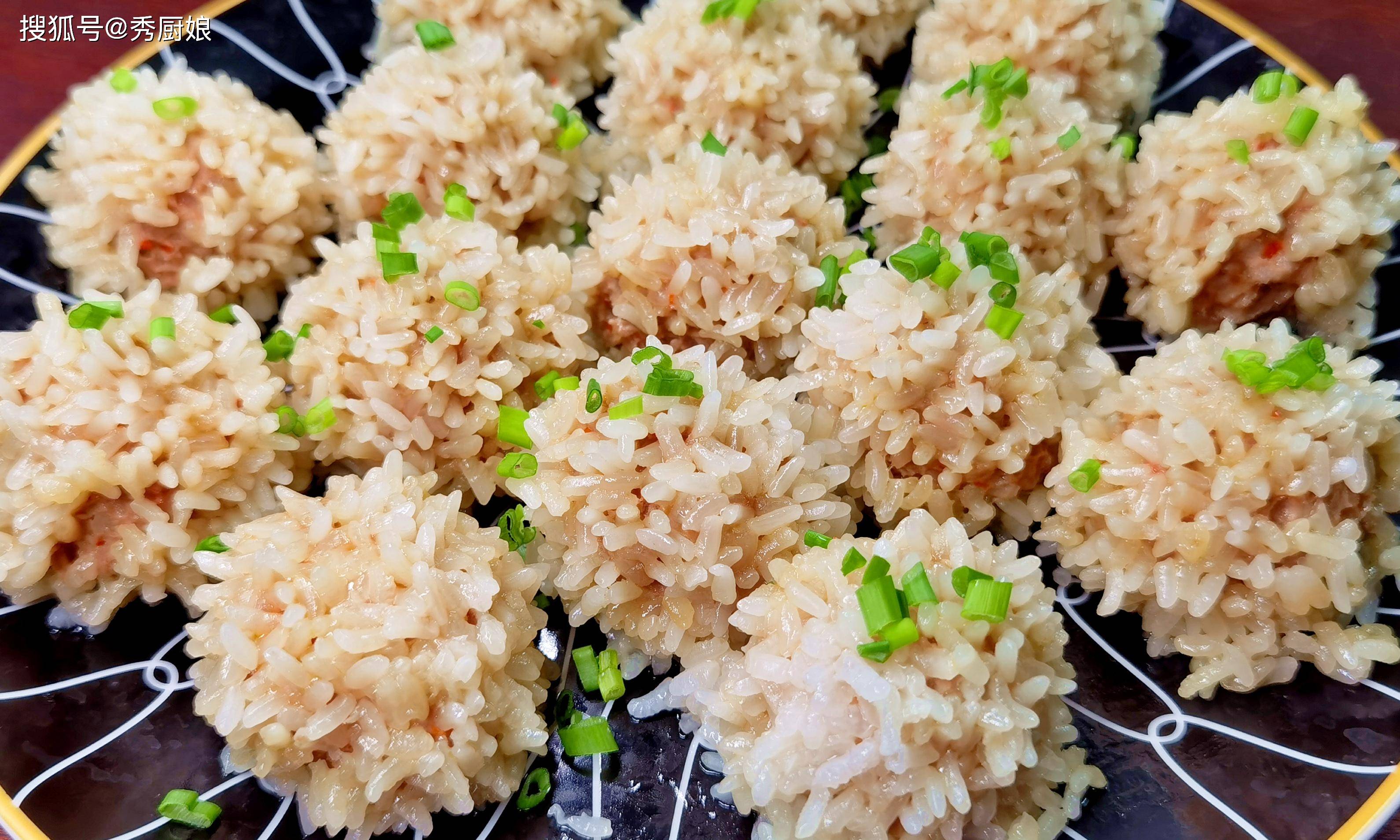 4.搓制丸子:將肉餡分成小份,團成小丸子。接著,將肉丸子在預先瀝水後的糯米中滾一滾,使丸子表面均勻裹上一些糯米。