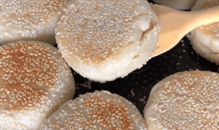 5.準備好白芝麻,在面團上刷上少許水,兩面粘上白芝麻。把它放在一邊,讓它升起,直到它在你手中明顯變大、變輕,這意味著它已經準備好瞭。 6.將電鍋預熱至中火,刷上油,然後將蛋糕胚放入電鍋中,然後在蛋糕胚表面塗一層油以保留水分,蓋上鍋蓋,一面煎直到完成。當蛋糕非常蓬松時,將其翻過來烘烤,直到兩面都變成棕色,並且用抹刀按壓時很容易彈起。拿出來放在盤子裡,一頓美味又漂亮的傢常飯菜就做好瞭。真香。溫馨提示:
