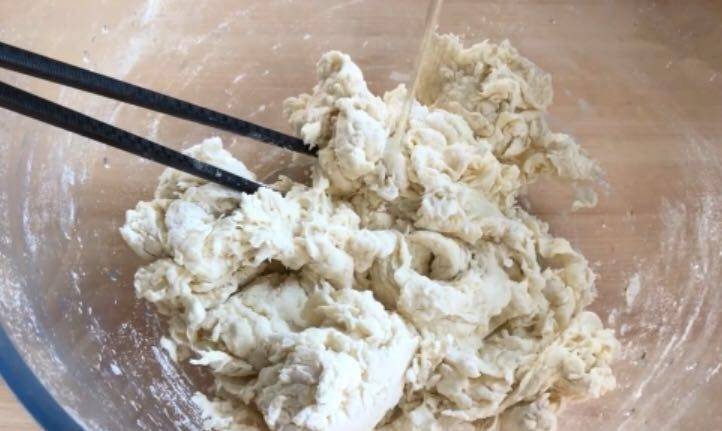 3、準備兩小勺面粉放入碗中,加入鹽、十三香、胡椒粉、熱油攪拌均勻,揉成薄面團備用。 4、案板上撒上幹面粉,取出松散的面團,直接將面團搟成長方形,然後將面團倒入並攤平,然後從一端開始搟,搟時用力壓緊,最後將邊緣收緊它。然後將面團分割成塊,將面團兩端壓在一起,使面團不流出來,直接成型為圓形餅坯。就做好每一項吧。