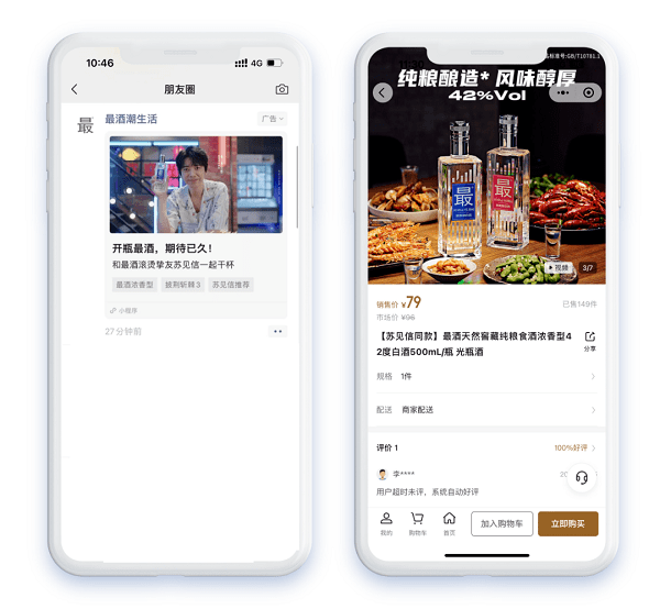 ▲ 最®酒朋友圈廣告直達小程序商城下單