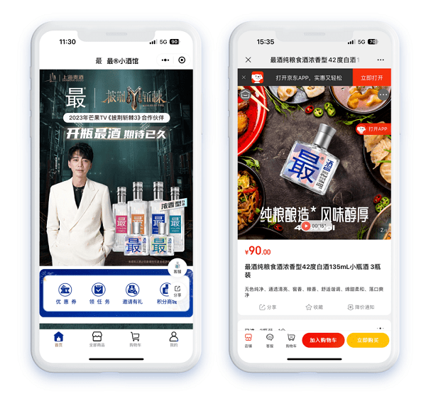 ▲ 最®酒公眾號快速跳轉小程序商城及京東商城