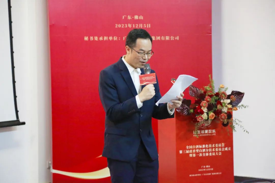 全國白酒標準化技術委員會秘書長宋全厚在會上致辭,對長期以來支持和關心白酒標委會和豉香型白酒分委會工作的委員表示感謝,對新當選的委員表示祝賀。並分別從“加強分委會能力建設、推動豉香型白酒標準體系建設、加強豉香型白酒標準化基礎研究、凝聚力量做標準”等幾大方面,對新一屆分委會提出具體工作建議。
