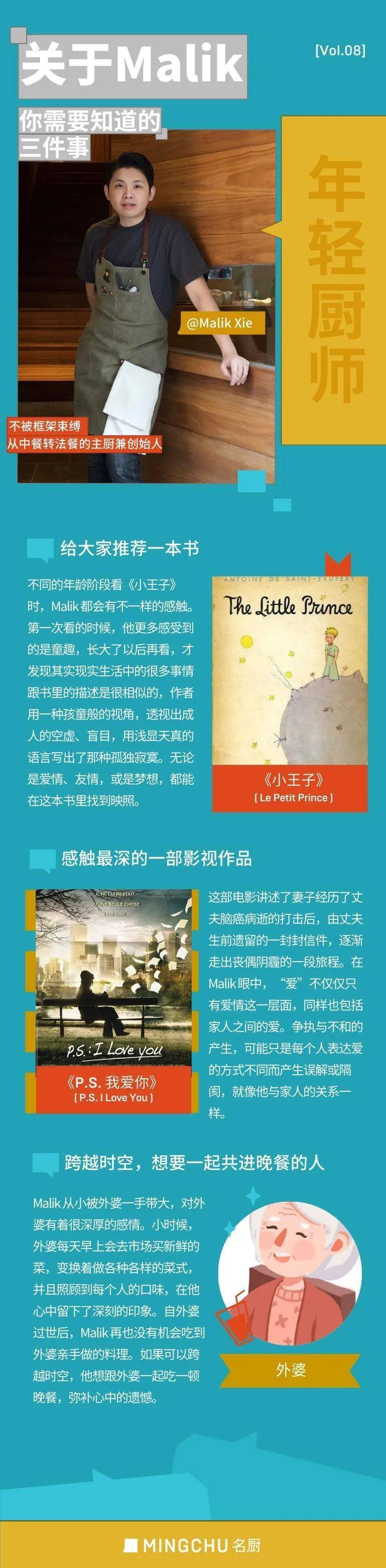 這件事很大程度上影響著 Malik,20 多歲從廚後,他的第一份工作是在傢鄉臺中的中僑婚宴做瞭 4-5 年,打下瞭紮實的基本功。再到後來出國,去往新加坡米其林二星 Restaurant ANDRE、臺北米其林一星的 RAW 餐廳歷練,他對於西餐的認知,逐漸有瞭新的轉變:不必執著於具體菜系,學一門菜系其實是在學一門技術、一種表達手法,這些都隻是我們創作的工具,就像繪畫,可以用毛筆、鉛筆等各種工具去展現自己的 idea。