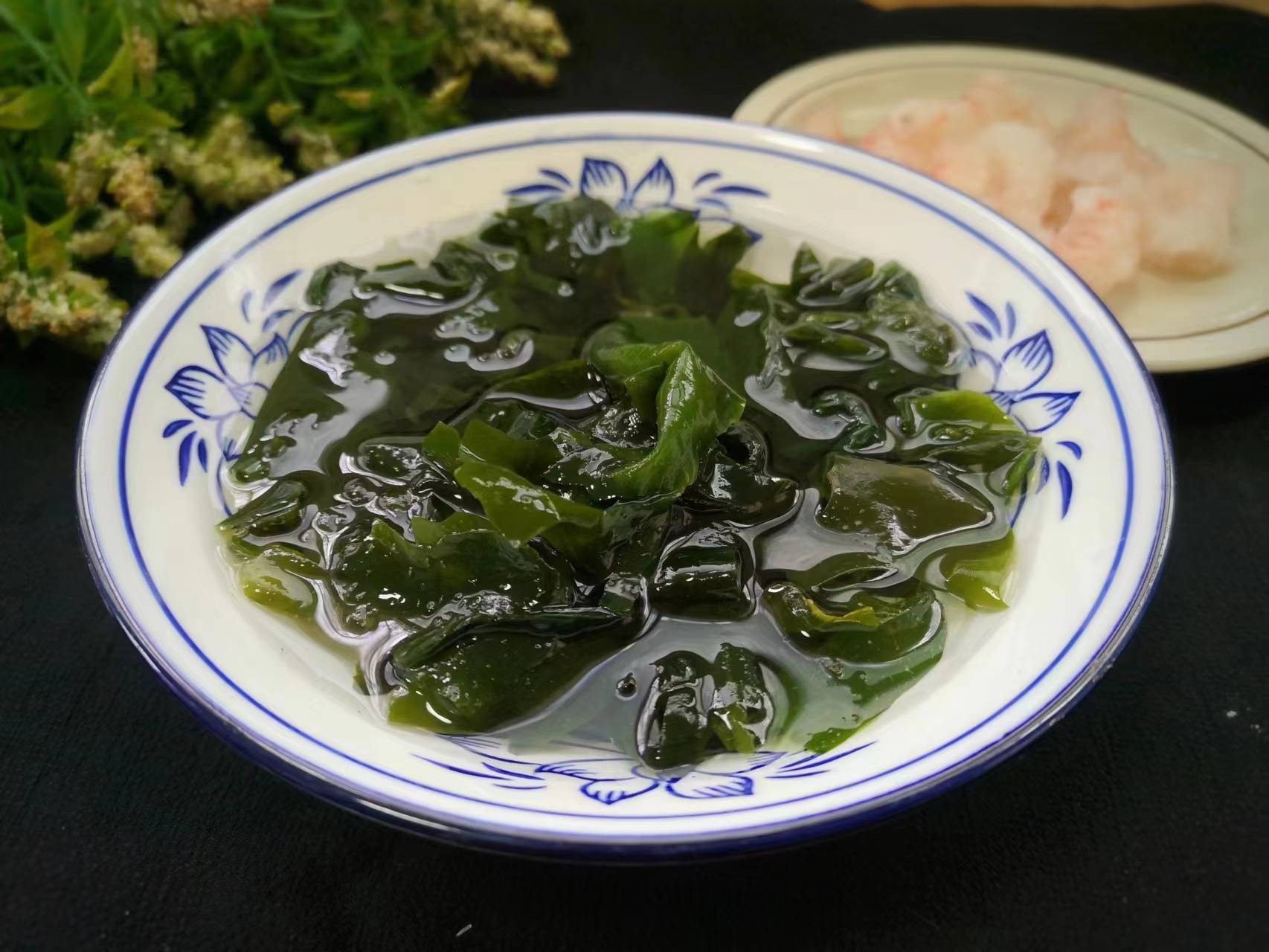 3、將幹裙帶菜扔進溫水中,它一會就會漲開,再清洗一下即可撈出。