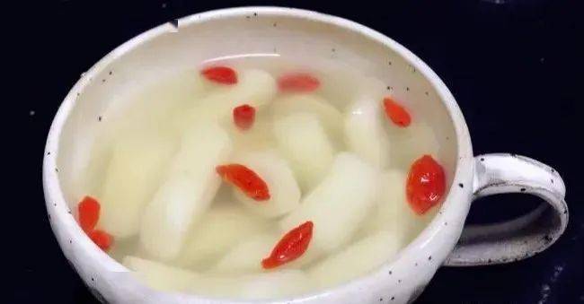 3、最後加入枸杞和適量的冰糖,小火繼續煮10分鐘,即可關火出鍋。