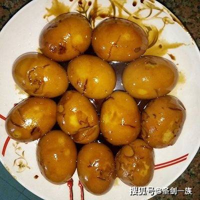 4、放入剝好的雞蛋,大火開始煮,待將其煮至沸騰的時候,轉小火慢慢鹵,鹵得差不多到最後開大火收汁,啤酒鹵蛋就做好瞭。