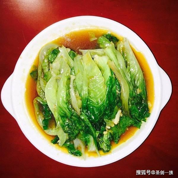 (3)鍋中熱油爆香蒜末,下入青菜翻炒片刻,倒入調好的醬汁大火翻炒均勻。