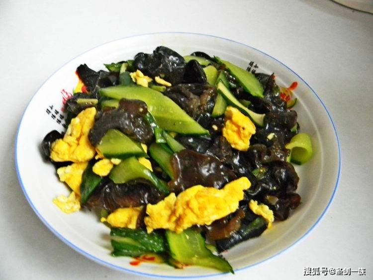 第一步、黃瓜、胡蘿卜洗幹凈,切成薄片,胡蘿卜記得去皮。幹木耳用溫水泡1小時,去根後洗幹凈,撕成小片。雞蛋打入碗中,加適量鹽攪拌均勻。