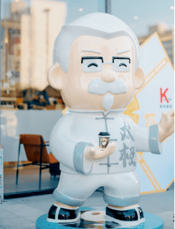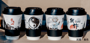 焦作是雲臺山、太極拳兩張世界級文化名片的所在地,也是司馬懿、韓愈、李商隱、朱載堉等諸多重量級歷史文化名人的故裡。 作為焦作市的首傢K-COFFEE肯悅咖啡,也將這些元素融入到瞭咖啡杯套上,一輪紅日從水墨雲臺山中冉冉升起,黑白相間的陰陽魚與身穿傳統功夫衫打太極的肯德基老爺爺玩偶,前後呼應,萌趣可愛,手書的焦作兩字更突出瞭“山水焦作”的城市特質。