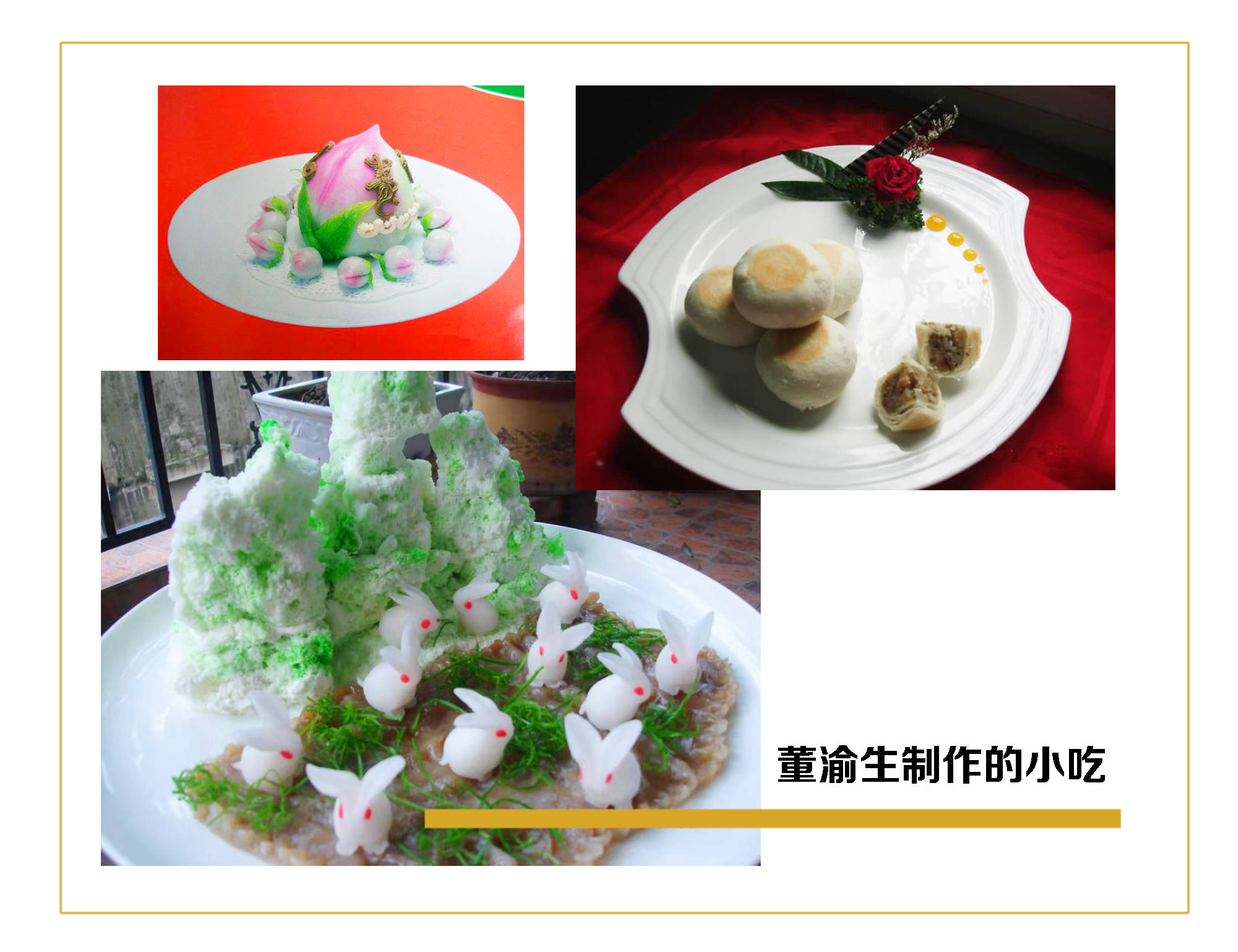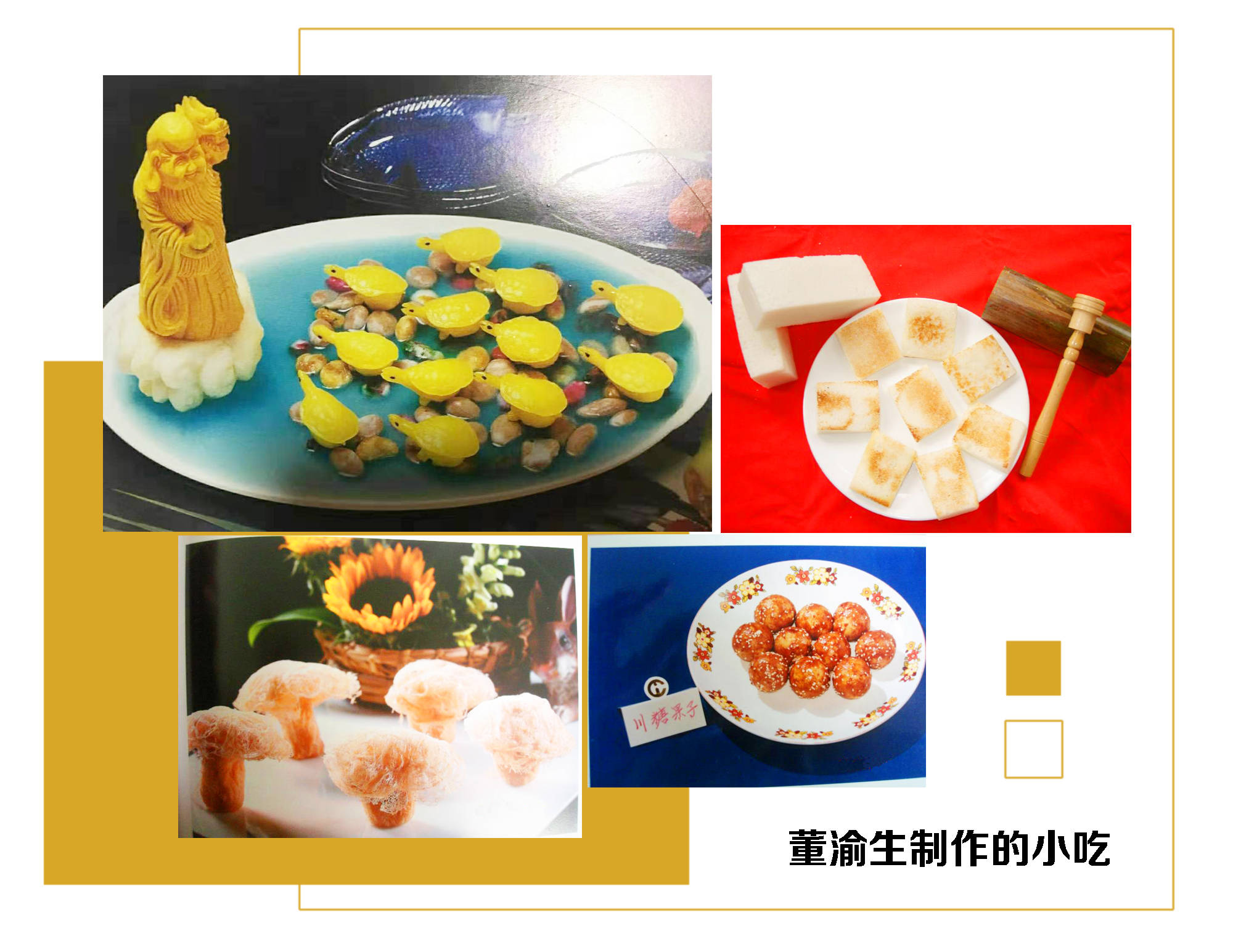 董渝生自1961年參加工作,到2007年退休一直都在重慶飯店工作。因為重慶飯店集中瞭重慶最為優秀的白案大廚,面點非常有特色和出名。董渝生在此積累瞭精湛和深厚的白案功底。