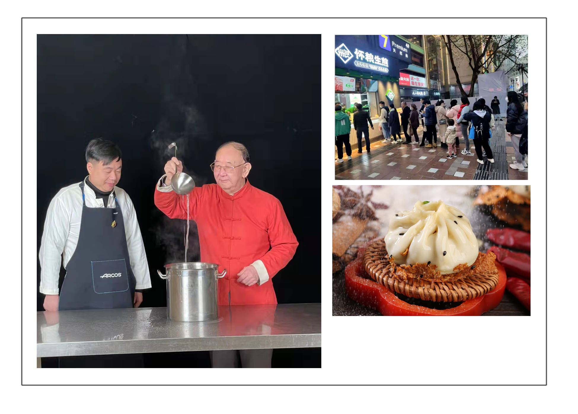 董渝生認為“懷糧生煎”品類應該擴大,比如增加醬肉生煎,並擬出需要的原材料和工藝流程,並親自示范操作,為“懷糧生煎”技術升級提供支持,也為企業更上一層樓奠定基礎。
