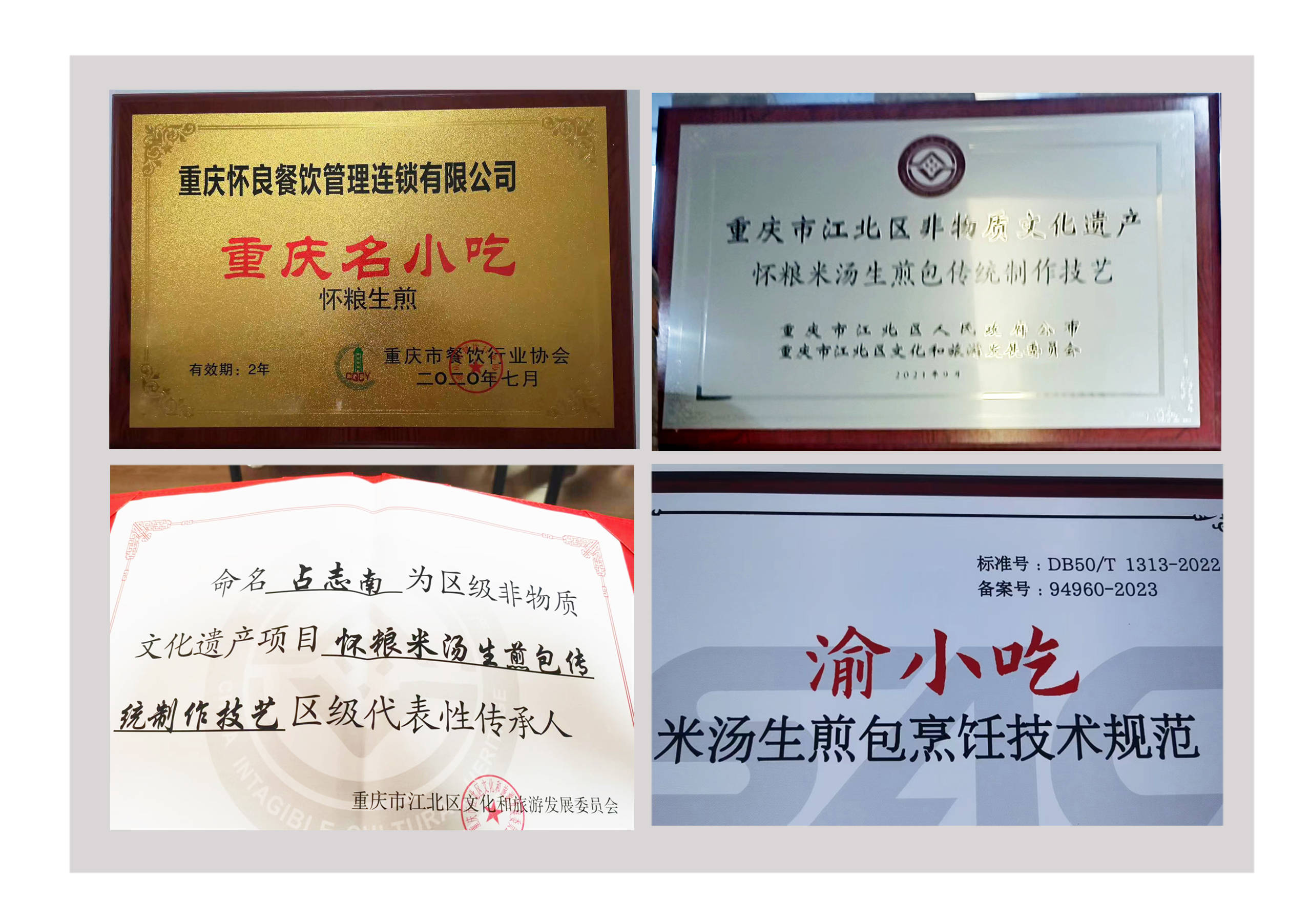 重慶名小吃“懷糧生煎”可以說榮譽等身,目前已獲得“重慶‘非遺’小吃”、 “大眾點評‘必吃榜’小吃”、重慶市場監管局認定頒佈的“重慶小吃地方標準”、“重慶老字號”等稱號。