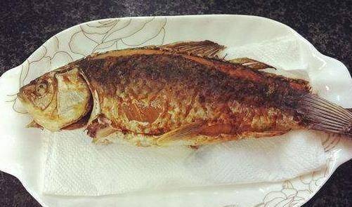 2、鍋熱後,加入適量食用油,然後加入清洗幹凈的鯽魚,煎至兩面金黃色,瀝幹油。