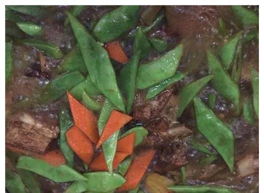 第三步:鍋中熱油,放入蔥、薑、香葉,炒香,然後加入排骨,翻炒,然後加入料酒1茶匙、生抽1茶匙、老抽1茶匙。醬汁,和一些冰糖,然後繼續翻炒。煎至變色後,倒入適量熱水。大火煮沸後,轉中小火煮沸。 20分鐘後,加入豆子、胡蘿卜和鹽。煮至排骨嫩、豆軟。快結束瞭。最後收汁就可以從鍋裡拿出來開始吃瞭。