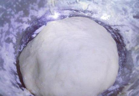 制作過程:第一步,面粉中加入酵母粉和白糖,倒入溫水中,揉成光滑的面團,蓋上保鮮膜,室溫開始發酵;