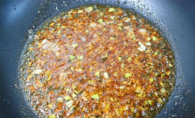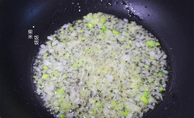 4,熱鍋涼油,放入蔥薑末,中小火炒出香味。