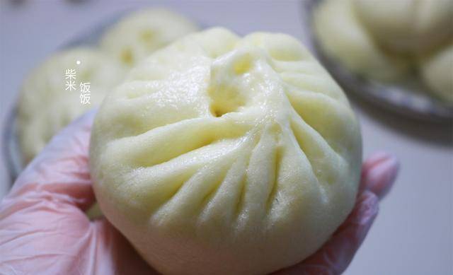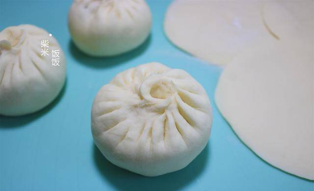 8,將小面團揉光滑,搟成包子皮,放入餡料,捏成包子。