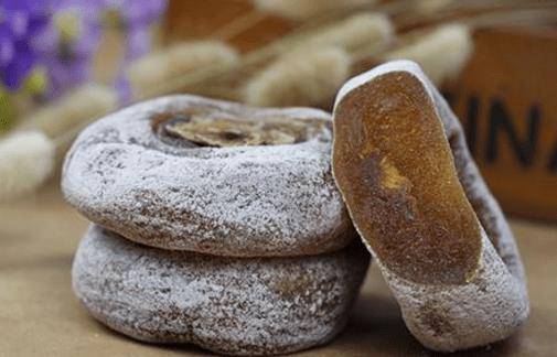 柿餅是用成熟的黃柿子曬幹後制成的美味佳肴。它比柿子好吃多瞭。味道甜而不膩,味道獨特。當時小吃的種類比較少,這也算是一種獨特的美食。還記得小時候,傢裡有一棵柿子樹。每次媽媽把熟透的柿子做成柿子給我們嘗。現在想起來,仍有這樣的回味。