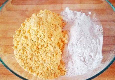 制作過程:第一步,準備一個小碗,加入酵母粉,然後倒入溫水,讓其融化,放置一段時間。在一個大碗中加入小米粉、玉米粉和白面粉,攪拌均勻;甚至