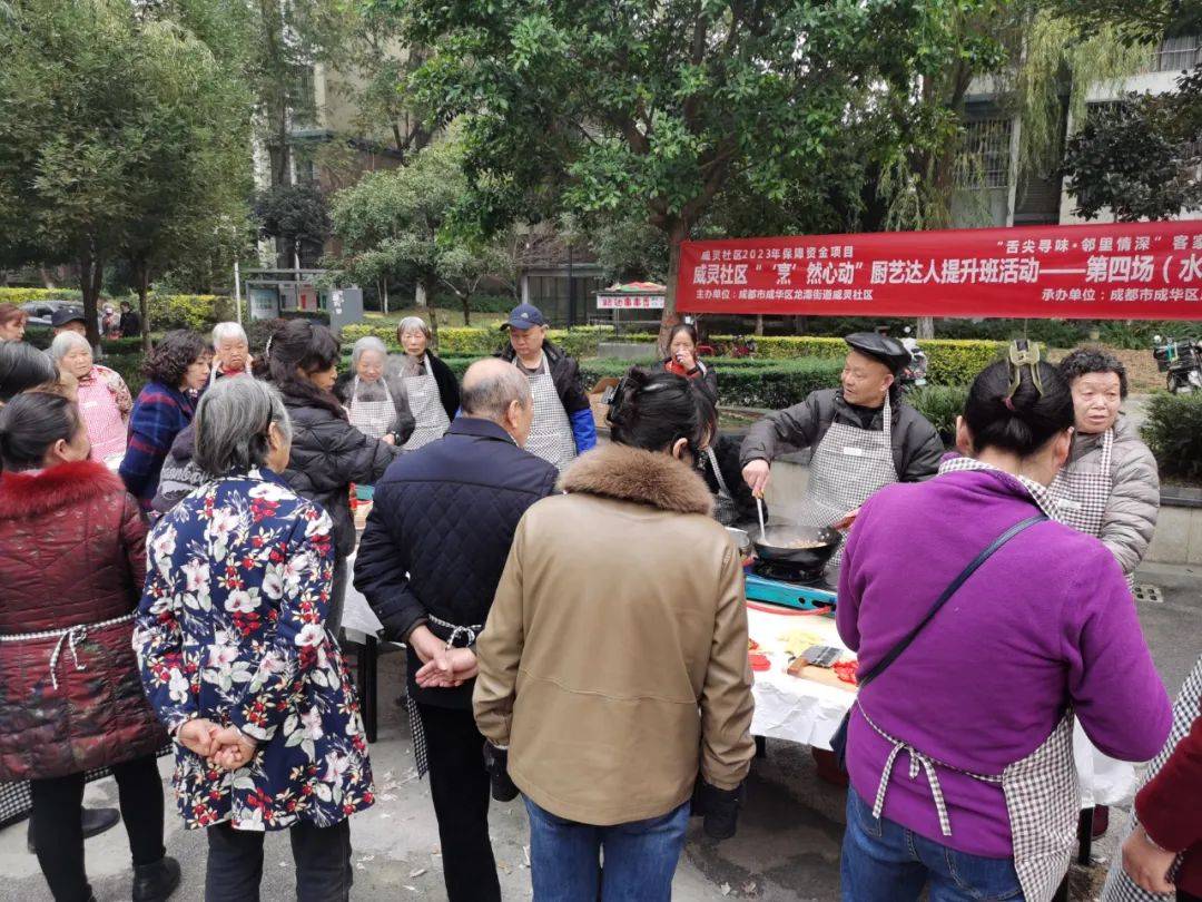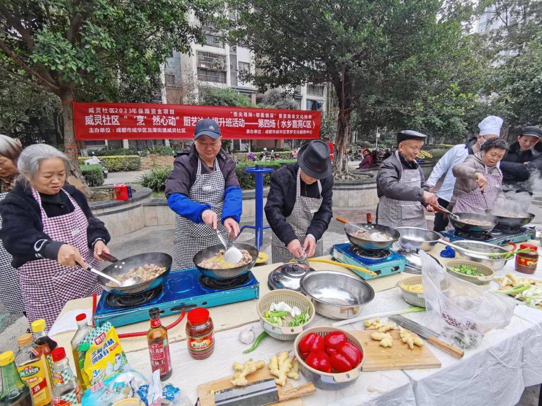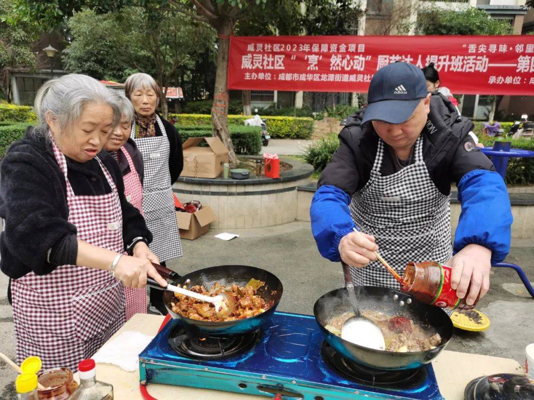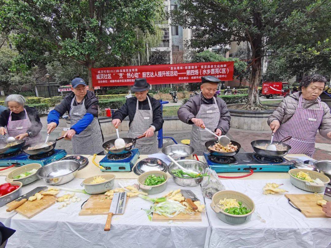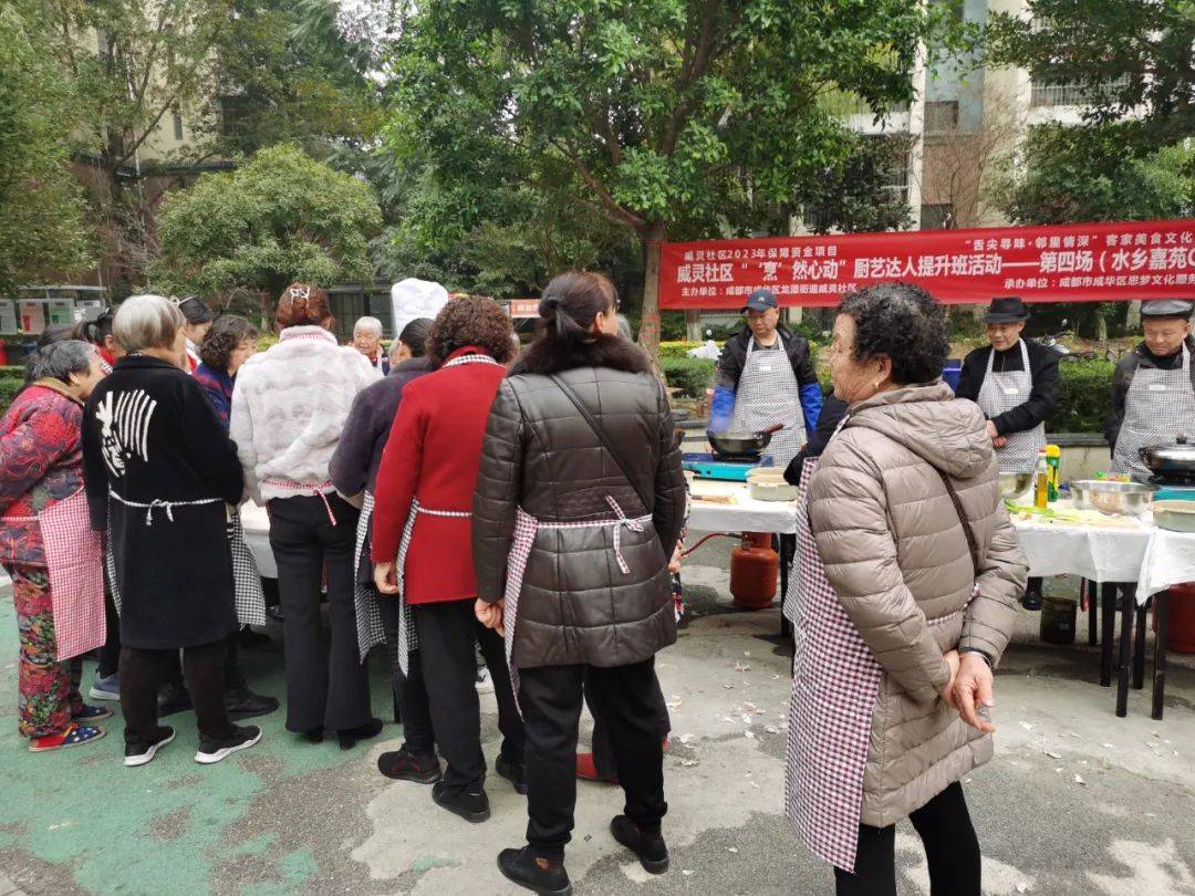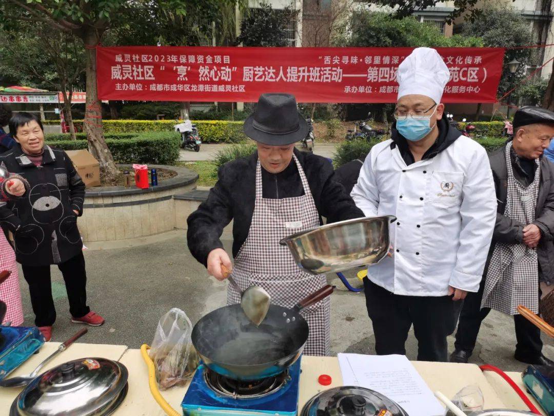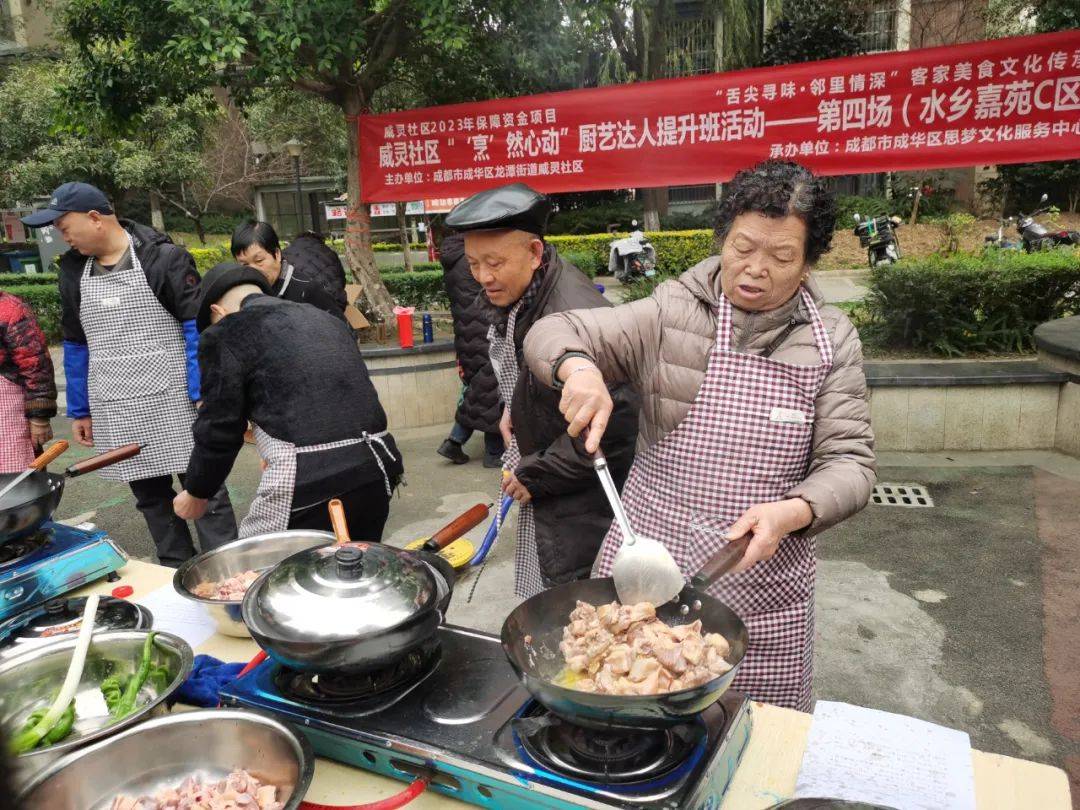 為豐富社區居民群眾的業餘文化生活,促進鄰裡間交流,共創美好社區,2023年12月8日下午14:00,成都市成華區龍潭街道威靈社區聯合成都市成華區思夢文化服務中心,在水鄉嘉苑C區開展瞭“烹然心動”廚藝達人提升班第四場活動,以廚會友、以食為樂。