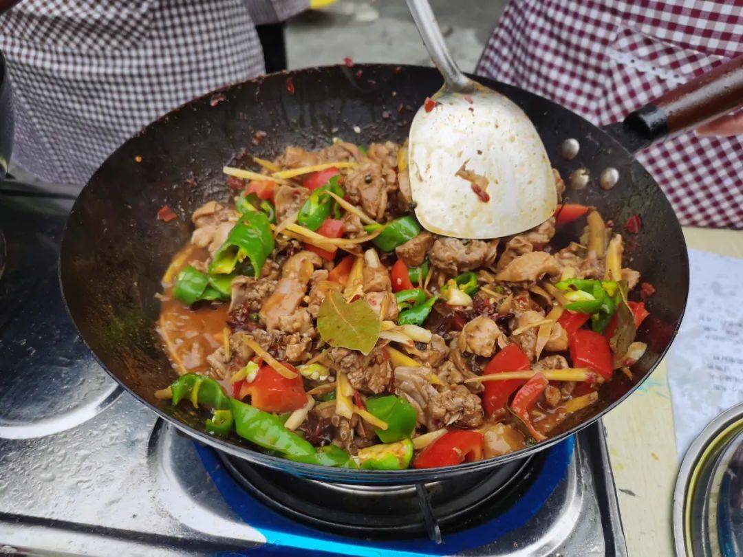 接下來就是居民群眾大顯身手的時刻瞭,隻見“大廚們”各展絕活,技藝嫻熟,拿勺顛鍋,一招一式,展示著自己的看傢本領。點火、起油鍋、下菜、顛勺……“鍋光勺影”之間,一道道香氣撩人的特色佳肴陸續出鍋,“煙熏火燎”之間,新鮮的食材蛻變為一道道美味佳肴,動作嫻熟、幹凈利落,用同樣的食材,燒出瞭各自的特色。