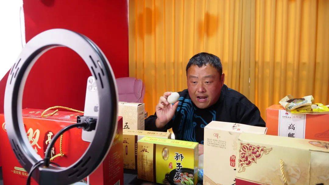 “傢人們,這是我們高郵特產咸鴨蛋,采用傳統配方、工藝醃制而成,口感細膩沙軟,鮮香流油……”大鵬哥在直播間正與全國各地網友親切互動。